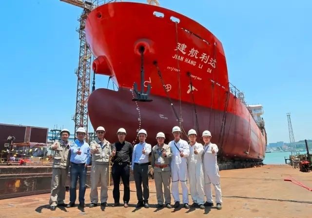 廈門船舶重工股份有限公司為廈門建發(fā)航運有限公司批量建造的5390DWT雙相不銹鋼油化一體船中的首制船(建造代碼415A)在企業(yè)一號船臺順利下水。船東、CCS船檢、廈船相關領導、人員代表出席并觀摩了下水儀式。