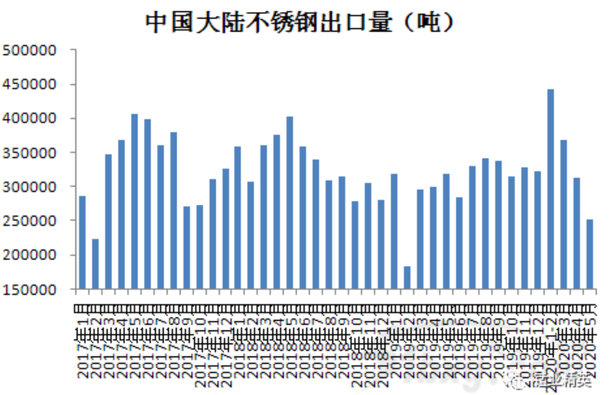 因國外疫情影響,各國港口封鎖,運(yùn)輸受阻,導(dǎo)致5月國內(nèi)出口大幅下降。據(jù)悉海外訂單一般都是提前1-2個(gè)月簽訂,所以業(yè)內(nèi)預(yù)估6月不銹鋼出口量將繼續(xù)下降。